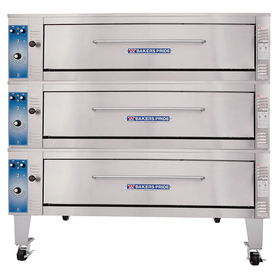 Equip your commercial kitchen with the Bakers Pride ER-3-12-5736 Oven, Deck-Type, Electric. This Super Deck Series Bake/Roast Deck Oven is designed to meet the demands of a busy restaurant kitchen. With three spacious 57"W x 36"D x 12"H cavities, you can easily bake or roast multiple dishes simultaneously, increasing your productivity and efficiency. The top and bottom "U" shaped heating elements, along with the infinite heat controls ranging from 140F to 550F, ensure precise temperature control for perfect cooking results every time. The 60-minute timer allows you to set and forget, giving you peace of mind while you attend to other tasks. The stainless steel exterior and aluminized steel interior make this oven durable and easy to clean. With 6" painted legs, it is stable and can be easily moved for cleaning or rearranging your kitchen layout. Trust Bakers Pride, a reputable vendor in the industry, and invest in this high-quality electric deck oven to elevate your restaurant's cooking capabilities.