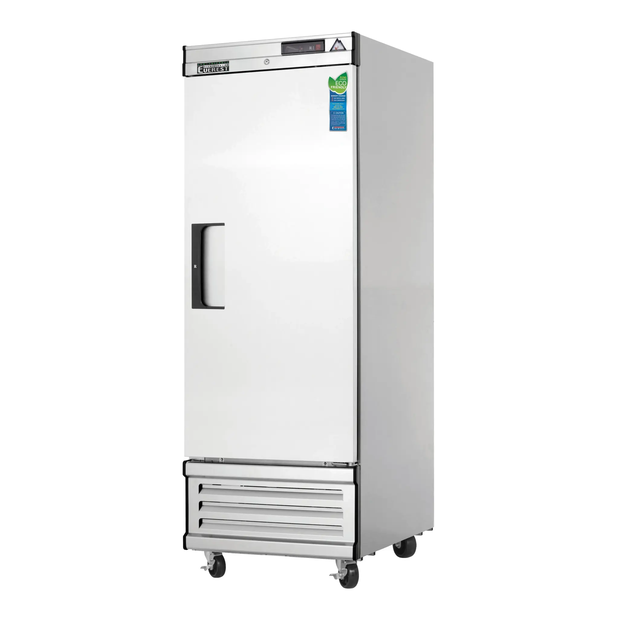 Maximize your food service potential with the Everest Refrigeration EBF1 Reach-In Freezer. This one-section freezer is designed to meet the demands of a busy commercial restaurant. With a spacious 21.0 cu. ft. capacity, you'll have plenty of room to store all your frozen goods. The self-contained bottom mounted refrigeration system ensures efficient cooling and easy maintenance. The full-height solid hinged self-closing door is equipped with a lock for added security. Inside, you'll find three epoxy coated wire shelves with height adjustable clips, allowing you to customize the storage space to suit your needs. The digital controls with LED display make it easy to monitor and adjust the temperature. The auto defrost feature saves you time and effort, while the LED interior lighting provides clear visibility. The stainless steel interior and exterior construction ensures durability and easy cleaning. With its 1/2 HP motor and NSF and ETL-Sanitation certifications, this Everest Refrigeration Reach-In Freezer is a reliable and efficient addition to any commercial kitchen.